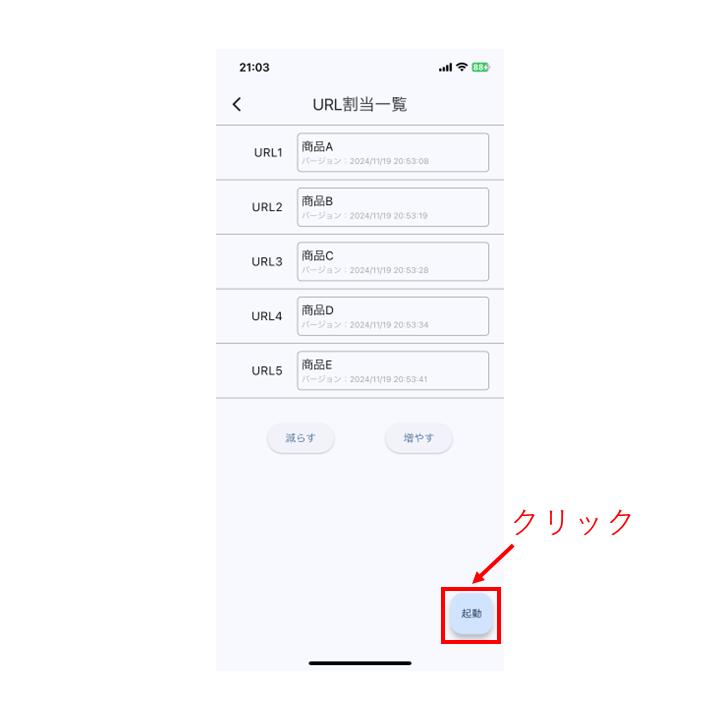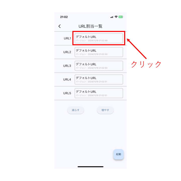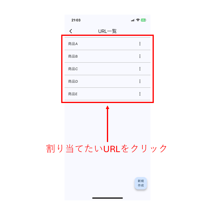 URL一覧で、事前に設定したURLの中から割り当てたいURLをクリックしてください。