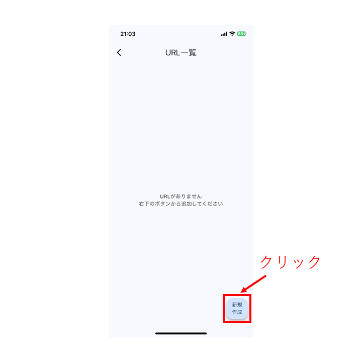 URL一覧が表示されるので、右下の新規作成ボタンから新しいURLの登録を行います。