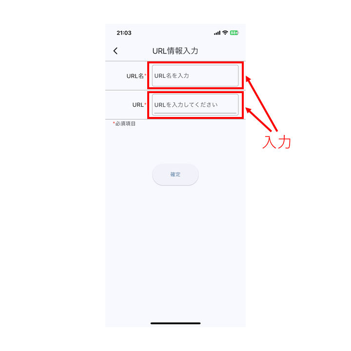 URL情報入力画面が表示されるので、URL名とURLを入力してください。