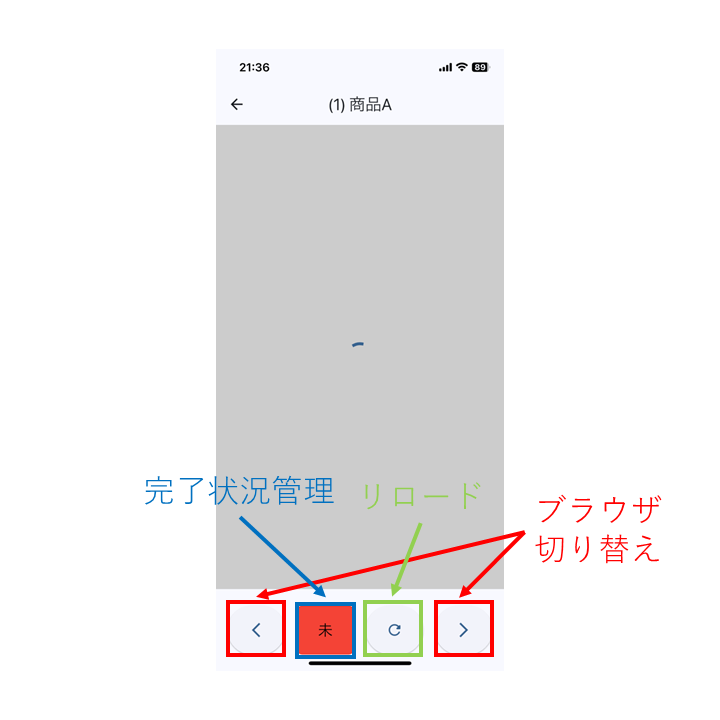 - 商品ページに到達できたものからカートに入れるをクリック&アプリ下の完了状況を「済」に変えます。